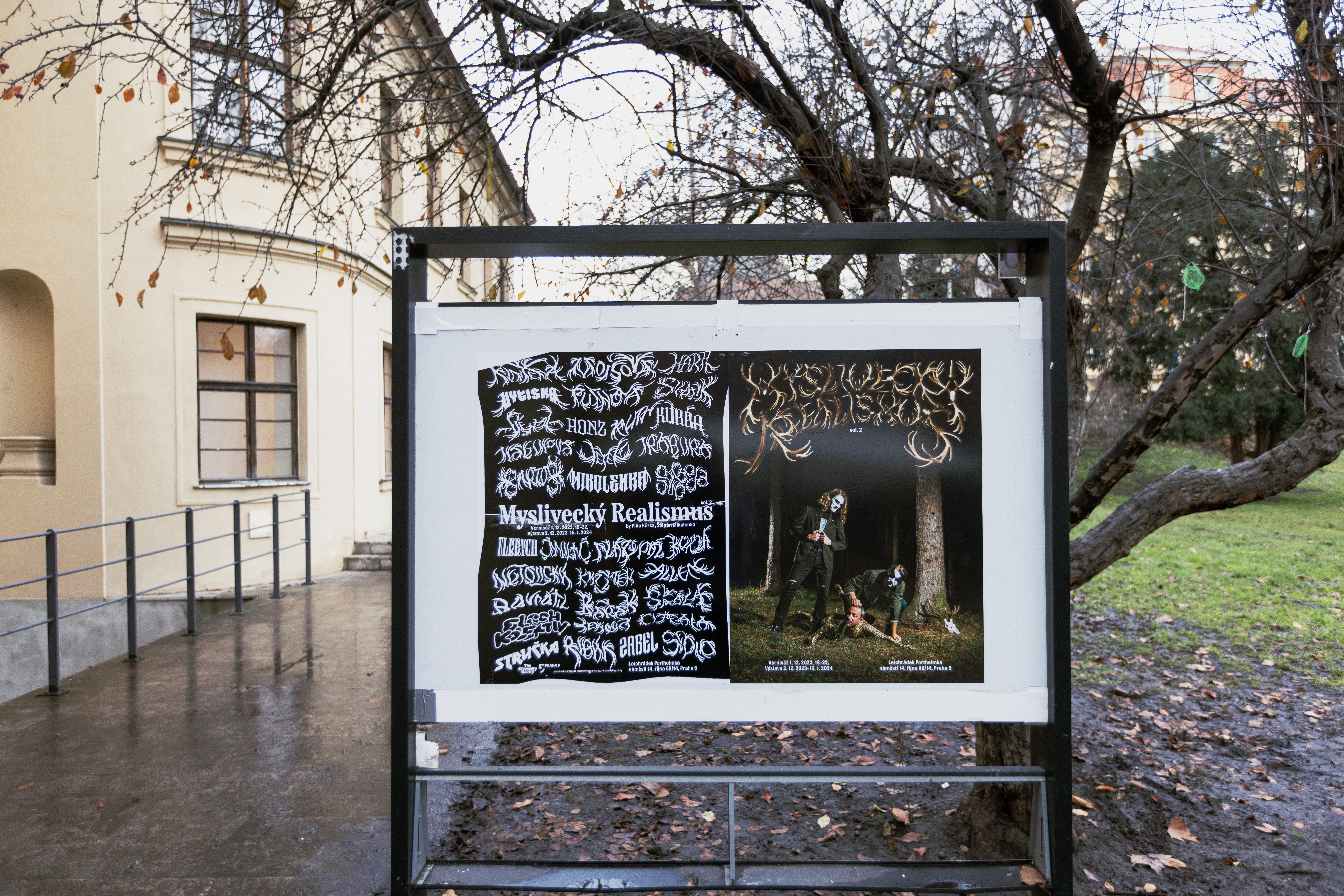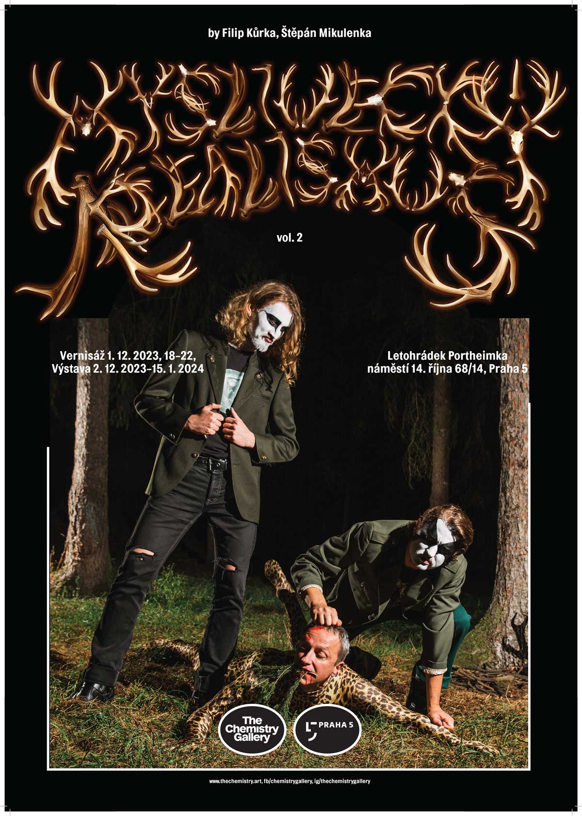 Naturally, the Gamekeeper Realism exhibition touches on en- vironmental issues, which can evoke dystopian visions of the future, still distant, that many people imagine as idyllic with a frightening certainty. These visions are transformed into morbid, catastrophic, or even decadent artworks uncovering the under- lying destruction, decay, and sadness. The visual form of the exhibition poster assumes the attributes of darkness sparkled with humour.