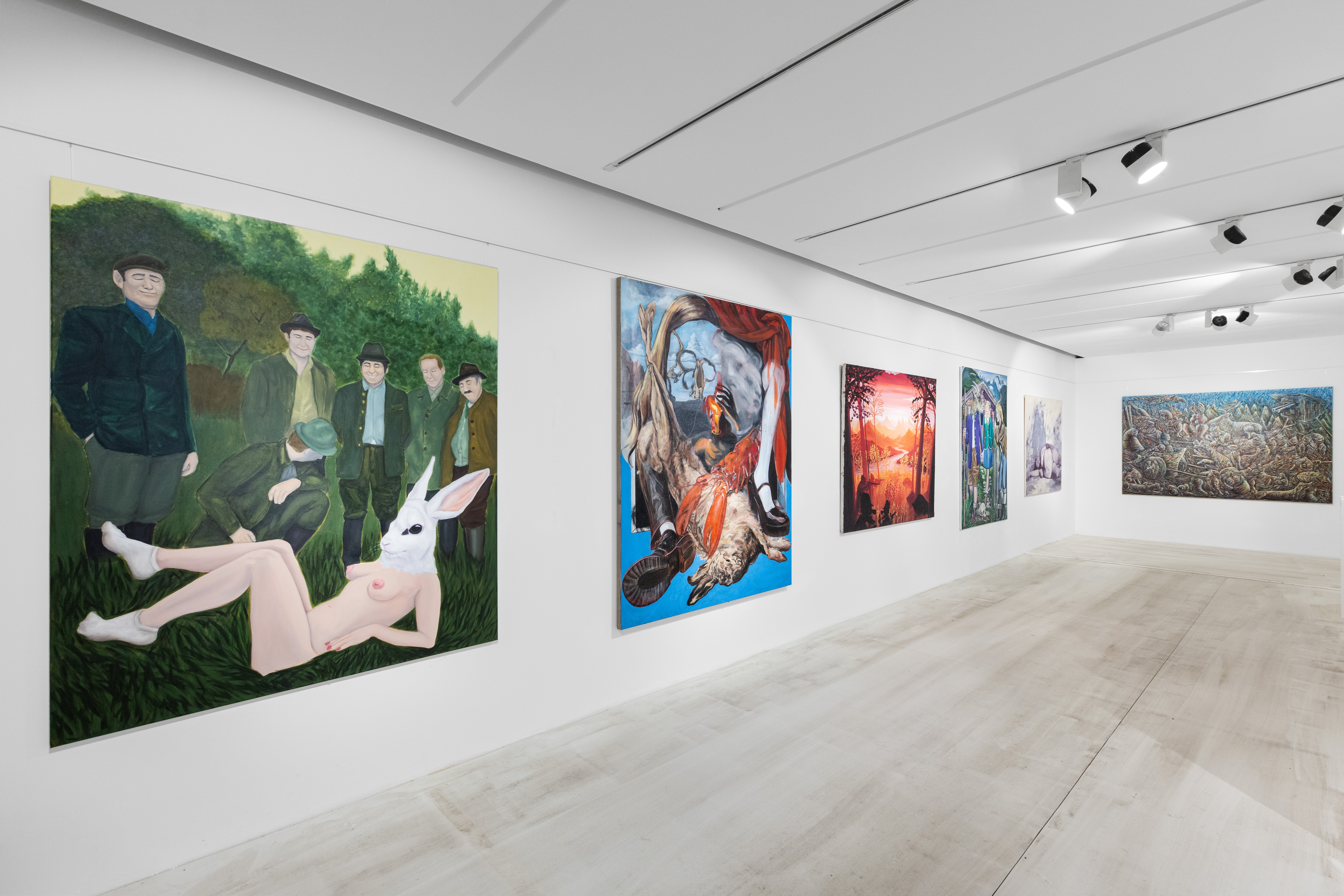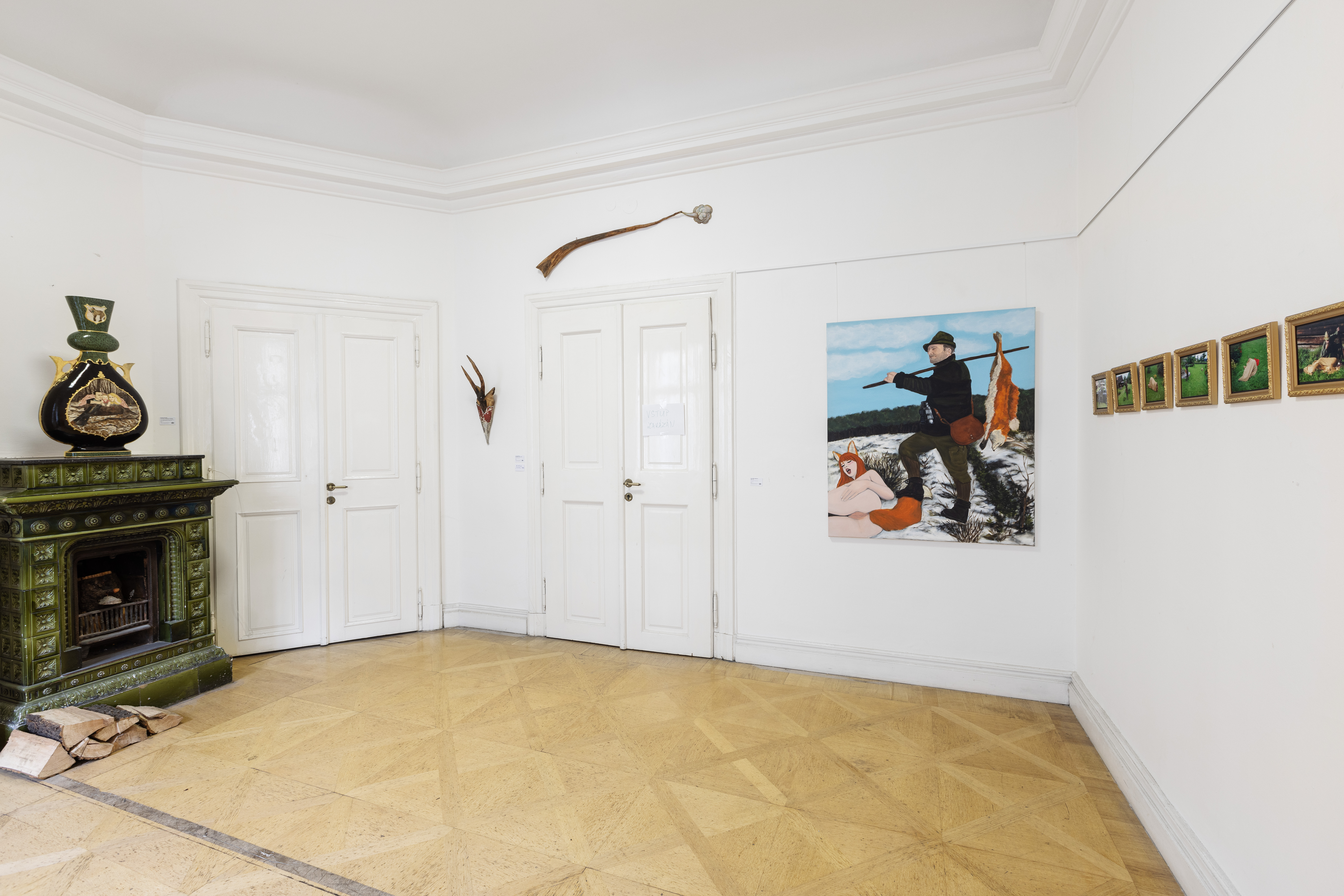 The umbrella term ‘hunting and gamekeeping’ indeed covers a wide range of metaphors and topics that can be found through- out the exhibition. There are scenes reminding of classical academic paintings, ever more marginalised in modern art.