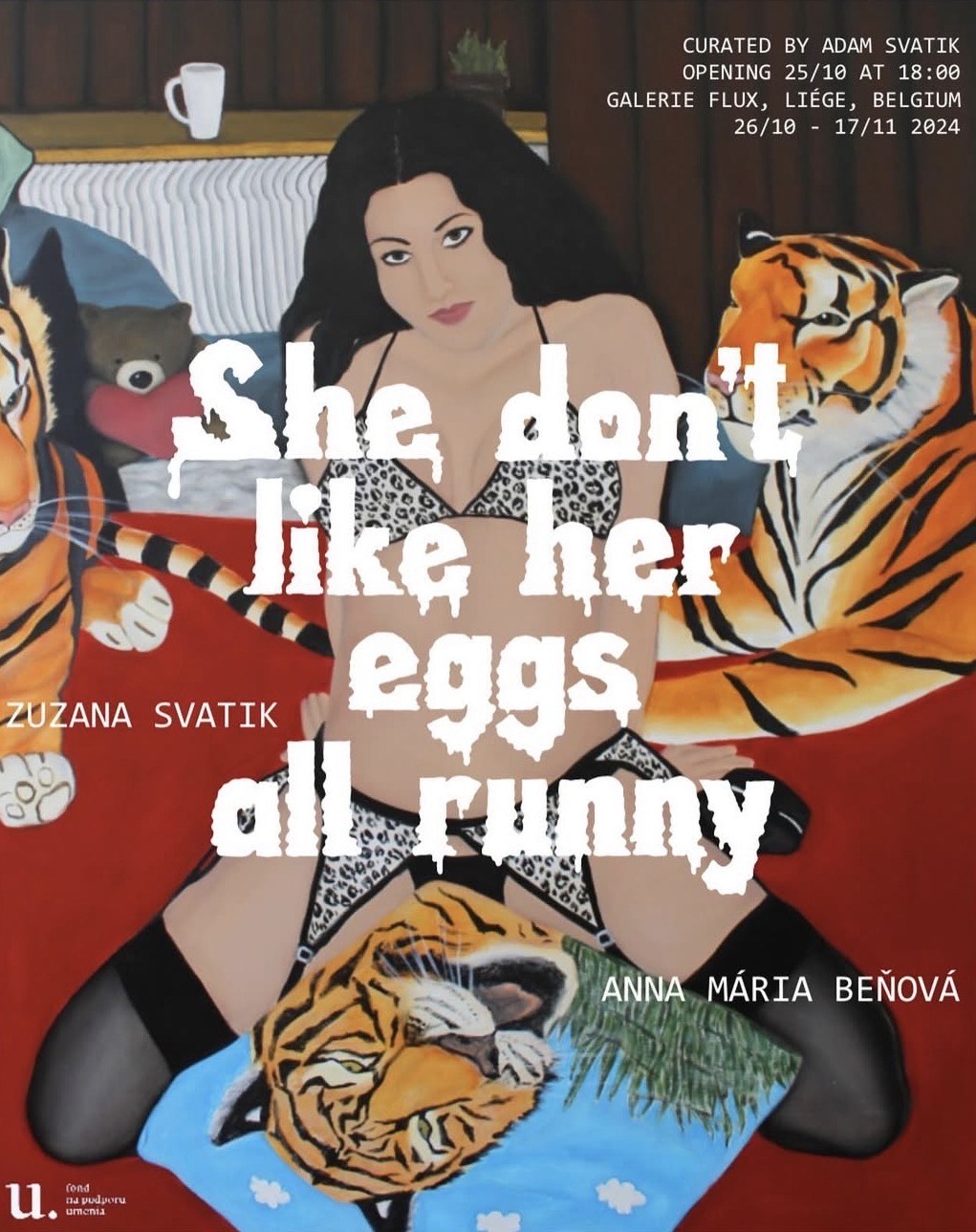 Another musical nod is found in the exhibition's title, "She Don't Like Her Eggs All Runny," taken from the song "In Spite of Ourselves," notably performed by the Viagra Boys and Amy Taylor.